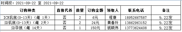9月22日实验动物中心动物发放表