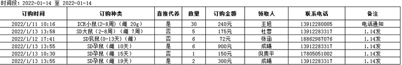 1月14日实验动物中心动物发放表