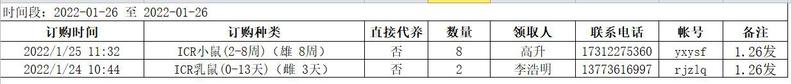 1月26日实验动物中心动物发放表