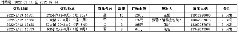 2月14日实验动物中心动物发放表